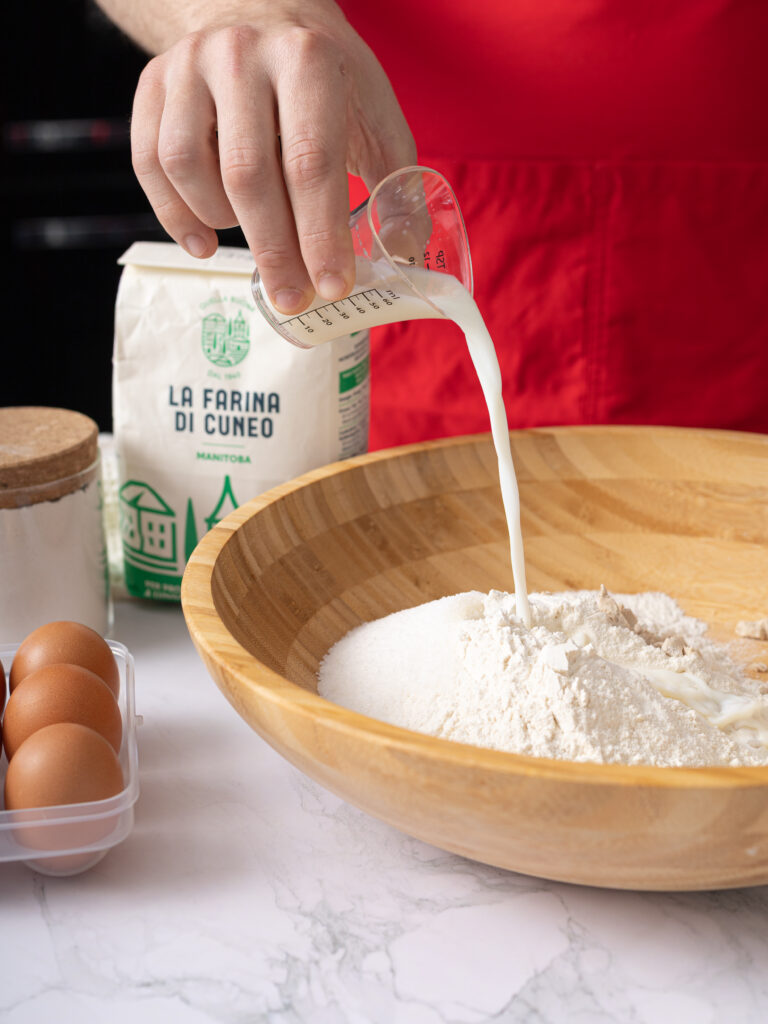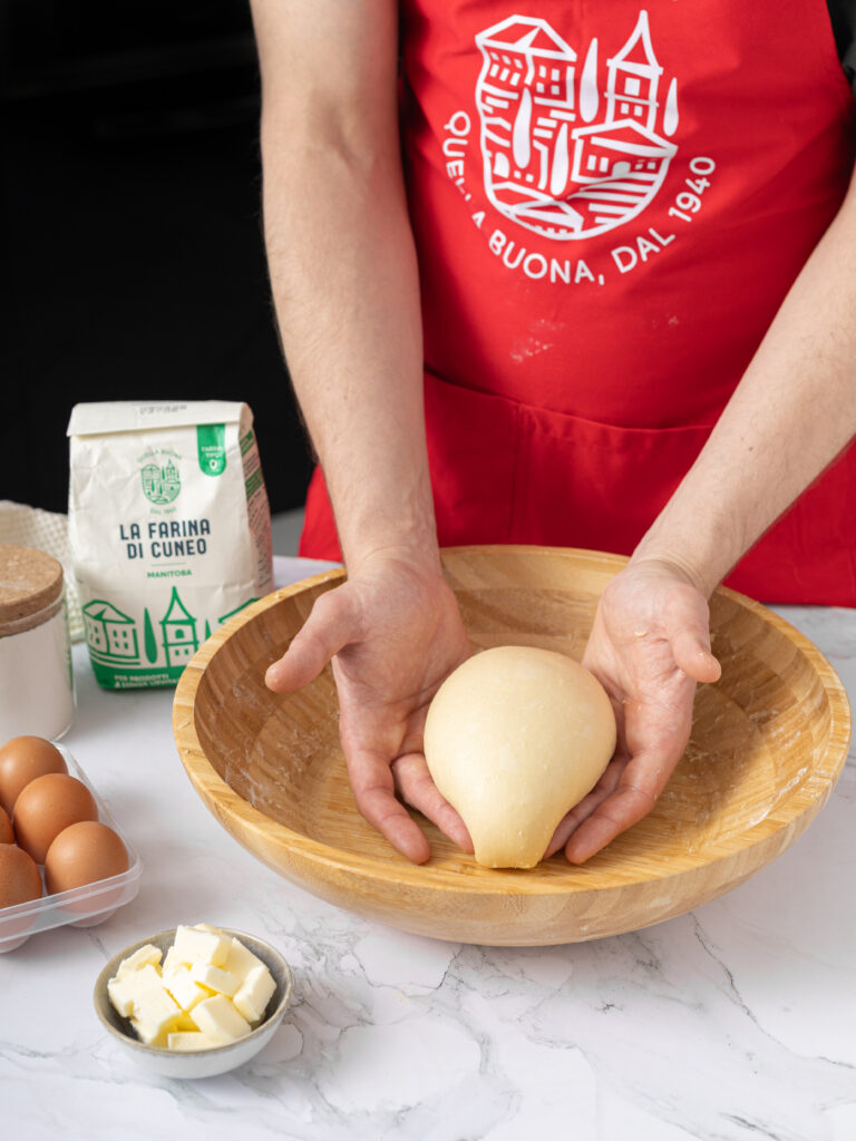 Per ottenere questa consistenza così avvolgente, prepareremo un impasto tipo pan brioche, caratterizzato da ingredienti ricchi come latte, uova e burro, che regalano sofficità e fragranza. Per un risultato ottimale, scegliamo la miscela Manitoba per prodotti a lunga lievitazione.