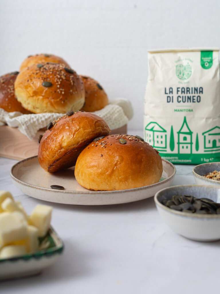 Una farina ad alto contenuto proteico è perfetta per impasti strutturati che devono assorbire e trattenere liquidi e grassi senza perdere elasticità e volume. Si tratta di una preparazione estremamente versatile: ideale sia per prodotti salati, come hamburger o panini farciti con salumi, sia in versione dolce, come brioche da colazione ripiene di creme, confetture o panna.