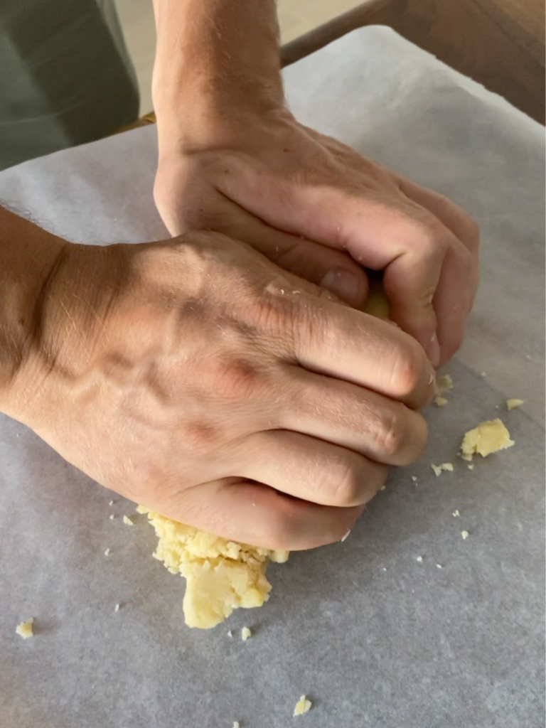 Successivamente, trasferirlo su una spianatoia e impastare a mano fino a quando non risulta compatto.